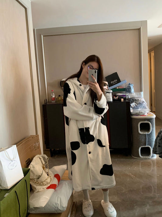 珊瑚绒黑白熊猫睡袍Black and White Fleece Pyjama