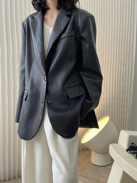 黑色廓形皮衣Black Leather Blazer