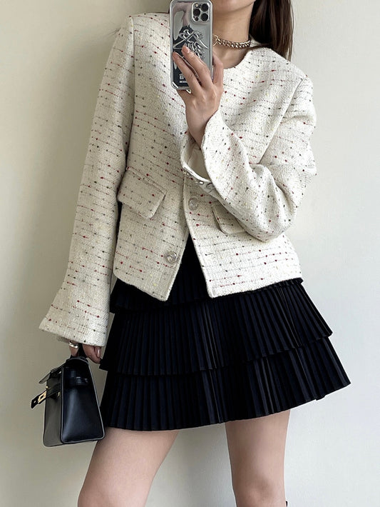 白色小香羊毛外套Textured Wool Jacket