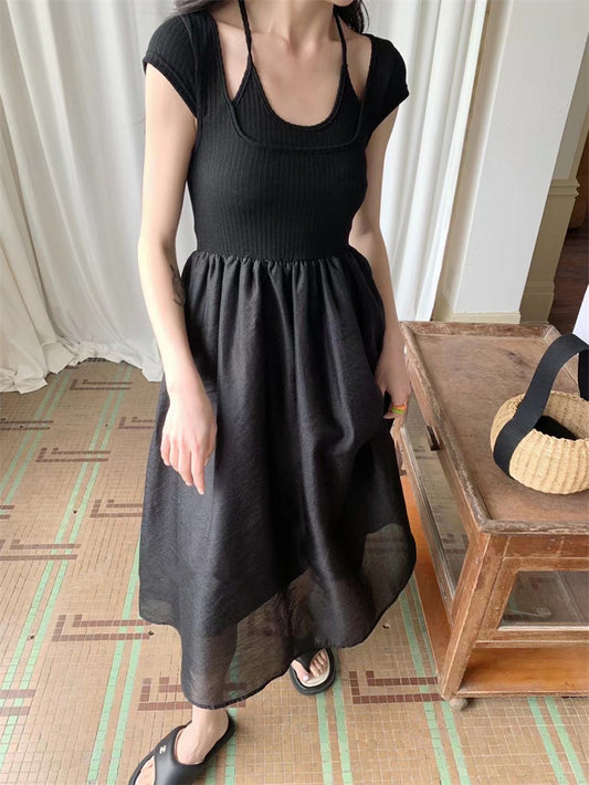 小性感绑带挂脖连衣裙Chic Spirit Pieced Neck Dress