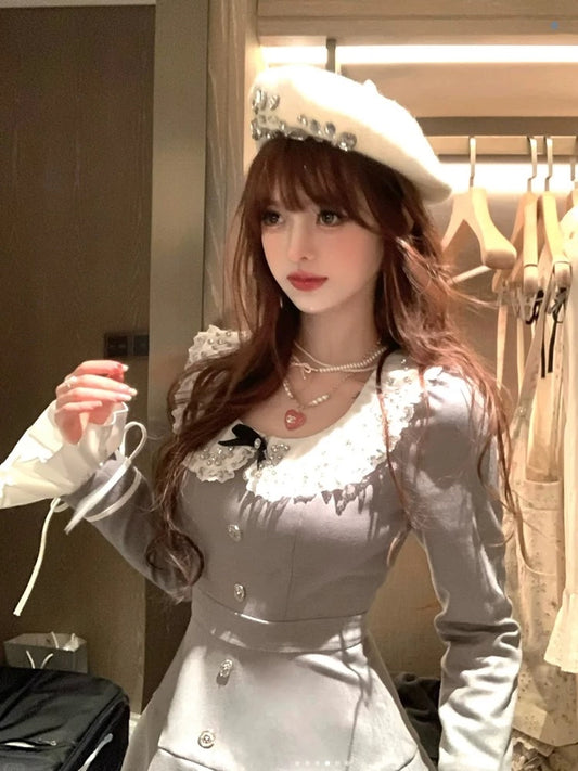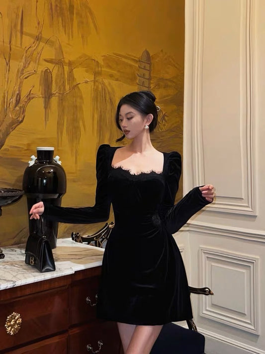 黑丝绒蕾丝边连衣裙Black Lace Mini Dress
