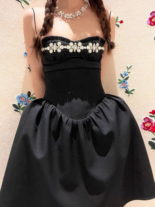 黑色镶钻抹胸连衣裙Black Rhinestone Dress