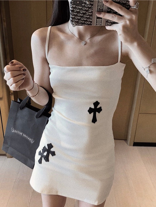 白色梦幻吊带连衣裙White Textured Mid Dress