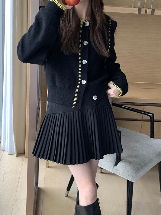 【学姐穿搭】黑色百褶半裙Pleated Mini Skirt