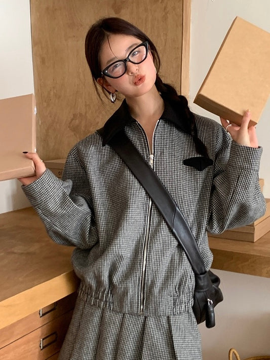 学院风翻领撞色针织套装College Style Lapel Colour Clash Knit Set