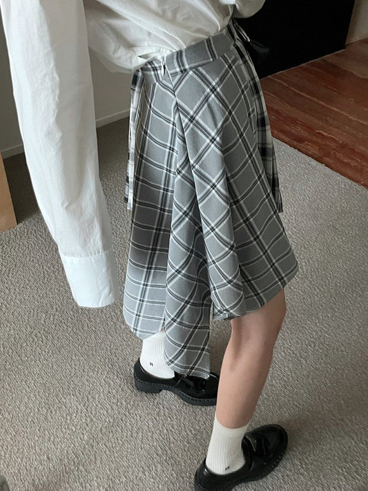 学院风格纹不规则半裙Striped Pleated Patchwork Skirt