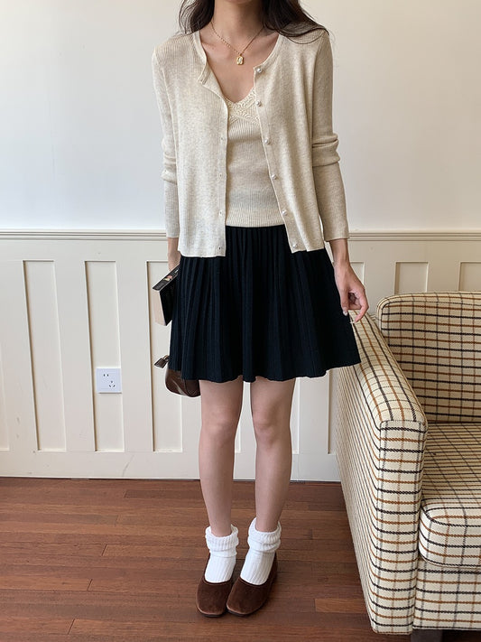 叠搭优等生/学院风高腰A字百褶针织短裙College Style Pleated Knit Skirt