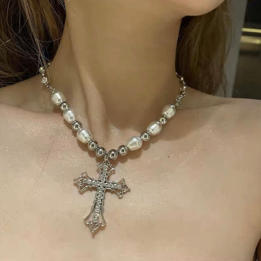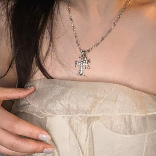 Bead Chain Necklace with Diamond Crossing Pendant