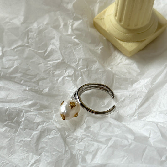 1 Piece Silver-Plated Omega Shape Ring with Pearls
