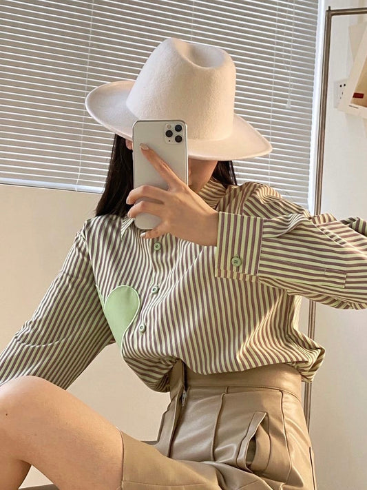 爱心竖条纹拼色衬衫Stripped Heart Embroidered Shirt