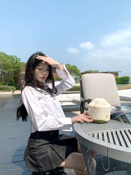 重工白色闪钻衬衫Gemstone White Long Sleeve Shirt