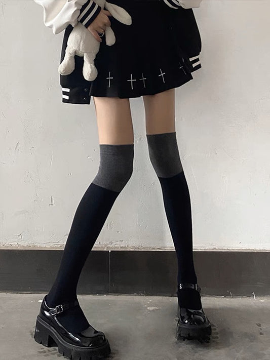 黑色灰边拼色过膝袜Black and Grey Over the Knee Socks