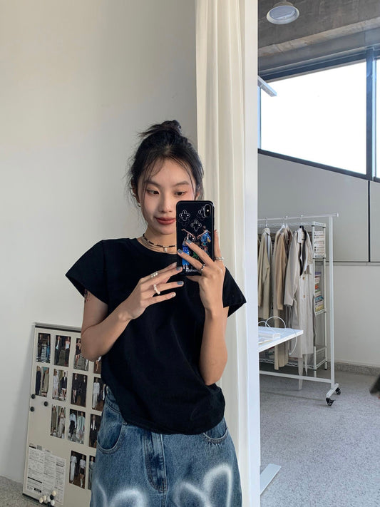 必须拥有!黑白纯棉正肩短袖Essential Round Neck Top