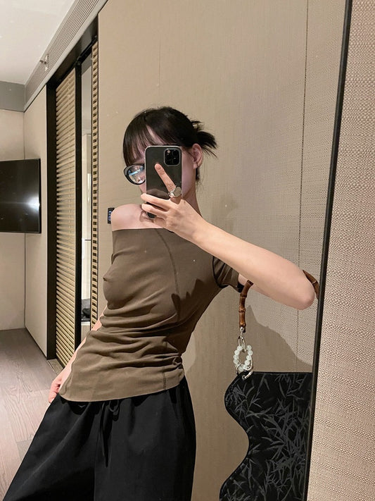 设计感斜肩短袖Seductive Off-Shoulder Slant Tee