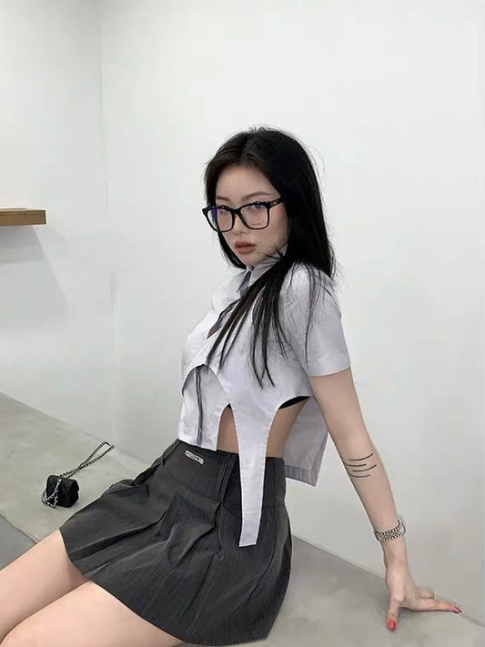 不对称设计感衬衫短袖Irregular Short Sleeve Shirt